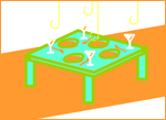 settled on a dining room table that automatically moved place settings to their correct locations, depending on the optimal configuration determined by the size and shape of the table + number of places being set. [inspiration: the orderly, entertaining dishware of disney's beauty and the beast.]